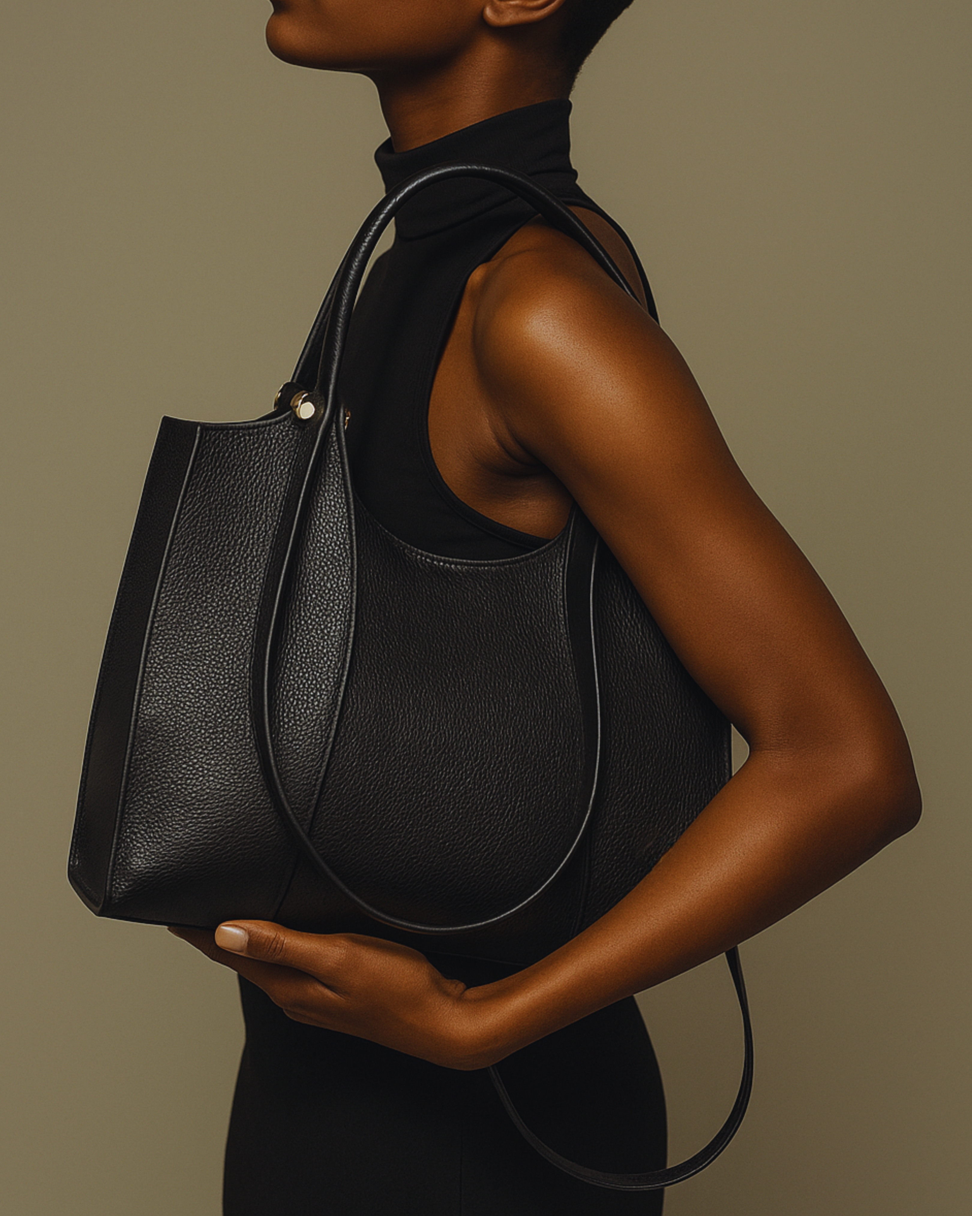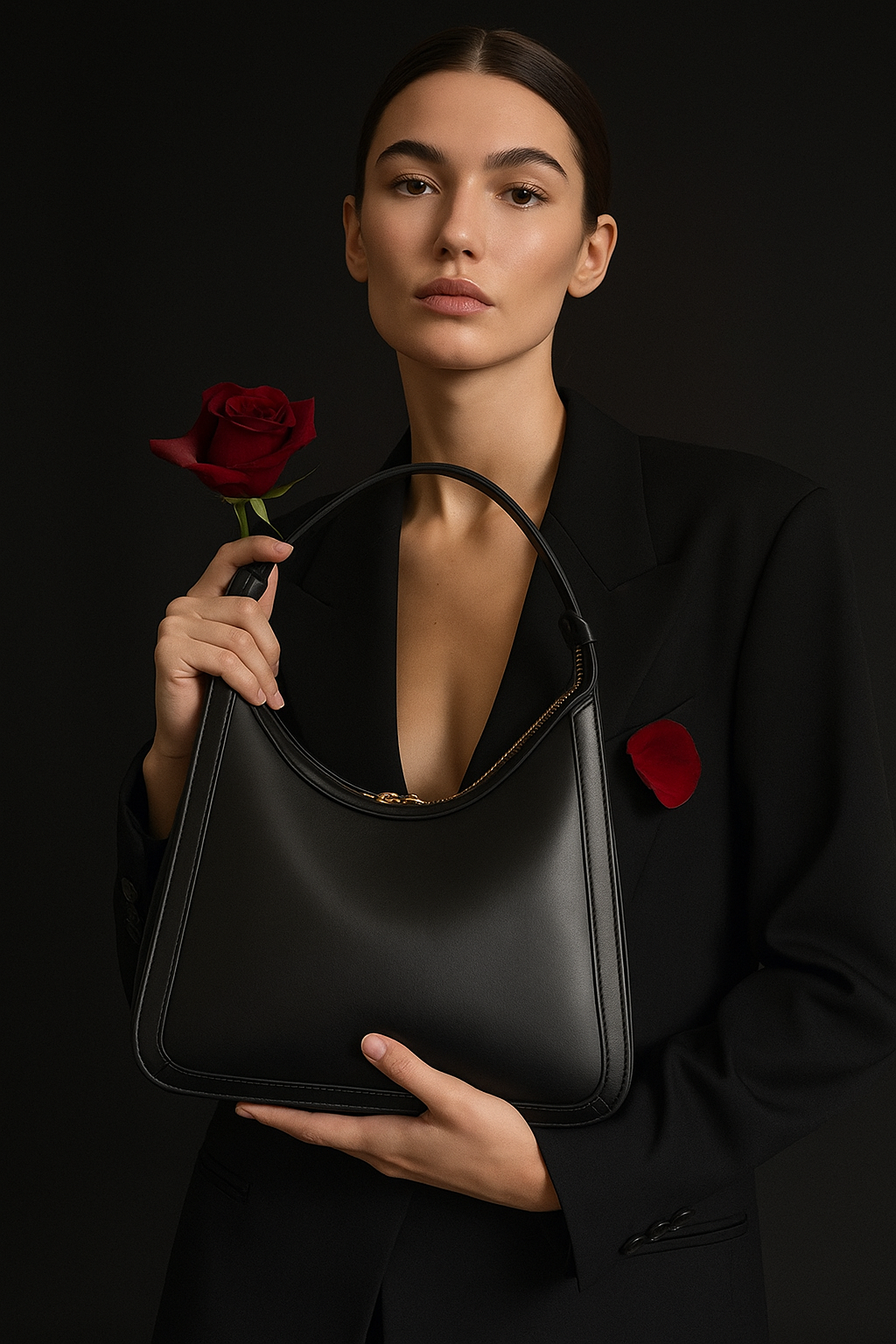 Gemma Handbag Black Minimalist Shoulder Bag with Gold Hardware | Premium Structured Design